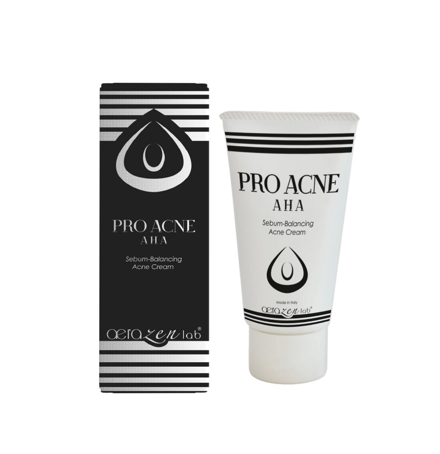 O creme Pro Acne AHA foi desenvolvido para reduzir todos os sintomas causados pelas lesões de acne (comichão, vermelhidão, pontos negros, pápulas, pústulas, etc.), mas principalmente para atuar na raiz do problema, erradicando a causa desencadeadora, sem descurar a melhoria do aspeto da pele, a proteção e a hidratação. Este creme possui propriedades essenciais graças aos seus ingredientes: purificante e normalizador da oleosidade, refrescante e delicado, ações realizadas pelo aloé vera e óleo de árvore do chá; esfoliante, pois estimula a reepitelização, reduzindo a inflamação e a hiperqueratinização do canal pilossebáceo. Estas propriedades são o resultado da interação entre ácidos, principalmente glicólico, combinado com málico, cítrico e tartárico, que garantem a eliminação das camadas superficiais opacas e desgastadas, substituídas por pele nova, enquanto a derme subjacente produz colagénio e elastina. Importa ainda destacar a presença de extratos de frutos vermelhos, com poder antioxidante, particularmente indicados para peles sensíveis e com tendência para imperfeições.